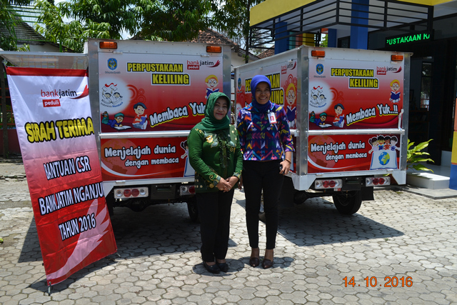 Date : 14 oct 2016Penyerahan Bank Jatim Peduli berupa Pemberian Motor Perpustakaan Mini Keliling (TOSSA) di Kab. Nganjuk