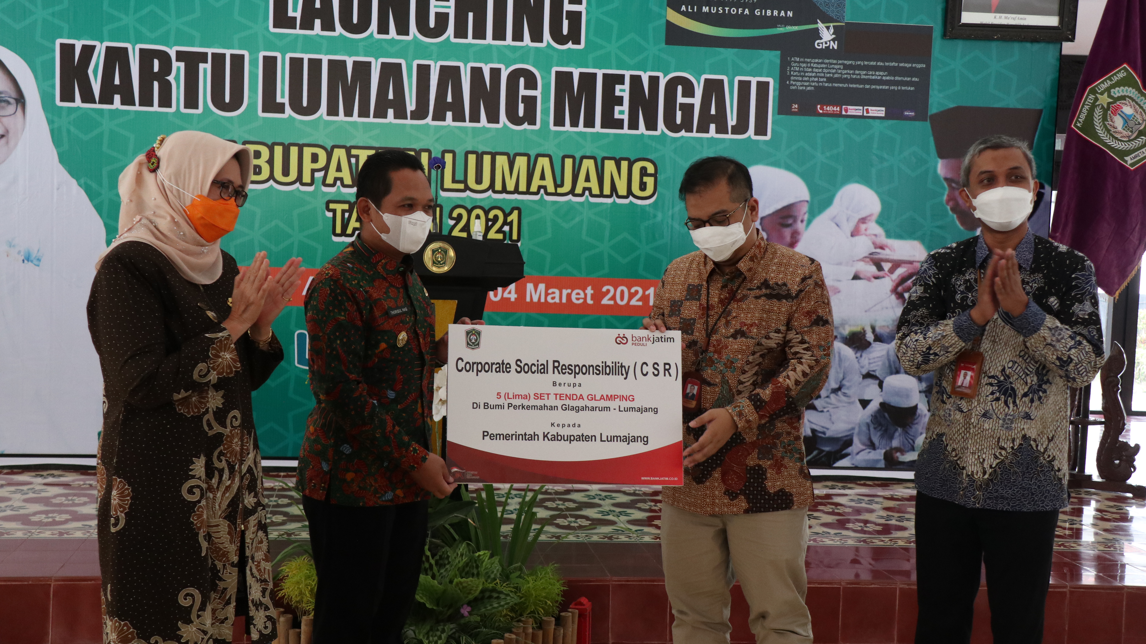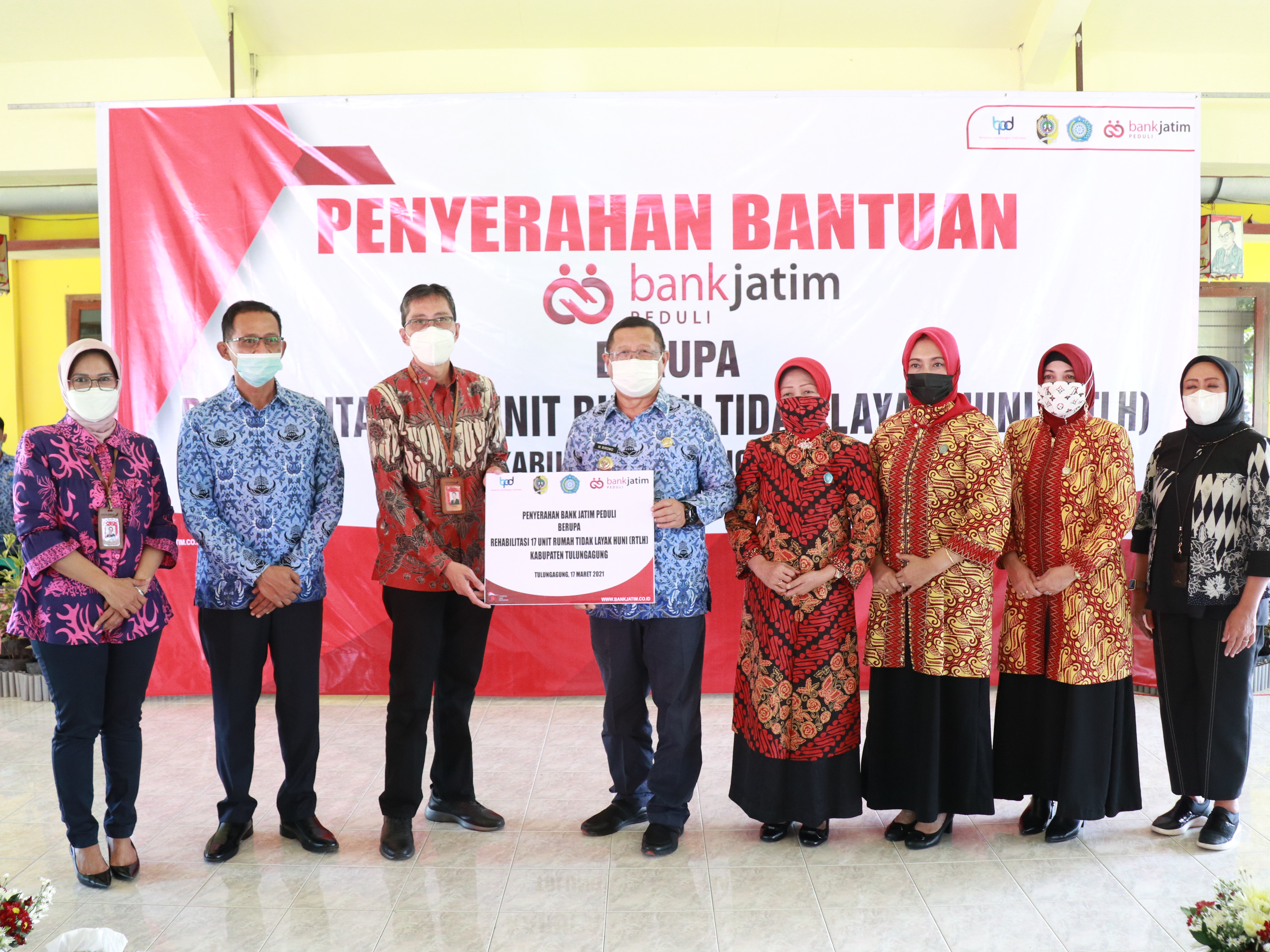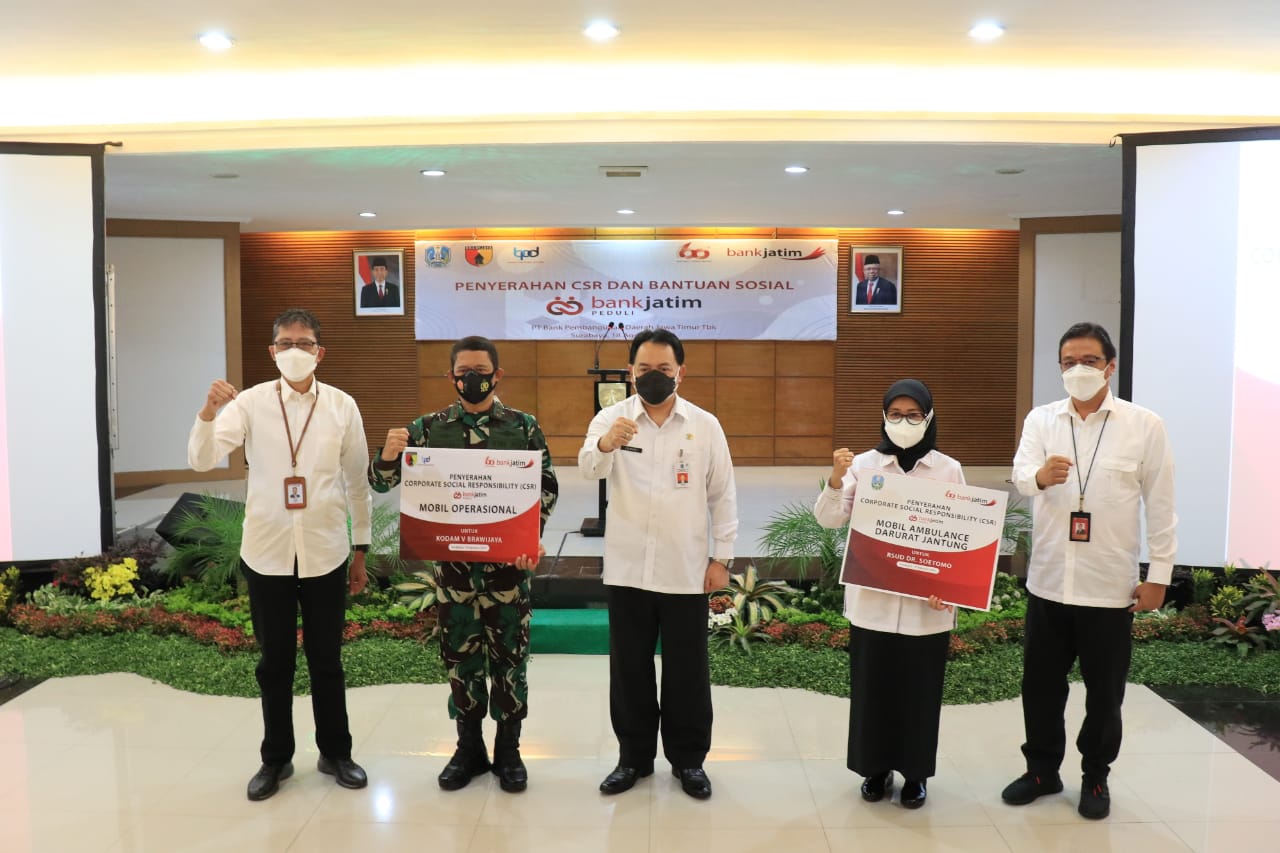 Commitment Handover of 75,000,000 BMPD CSR to the Situbondo Regency Government Date : 23 sep 2021 Handover of 2,500 Basic Food Packages CSR to the Situbondo Regency Government Date : 23 sep 2021 Handover of 1 APV Vehicle Unit Aid to the FUP-TPQ Date : 18 sep 2021 Handover of HOS Cokroaminoto Face-Off CSR Date : 24 aug 2021 Handover of Rp198,000,000 in Scholarship Assistance to 66 Students of Universitas Wijaya Kusuma Surabaya Date : 20 aug 2021 Handover of CSR and Social Assistance to Kodam V Brawijaya and RSUD Dr. Soetomo Date : 18 aug 2021 Handover of MSME Equipment Assistance CSR to the Pamekasan Regency Government Date : 12 aug 2021 Provision of Medical Equipment Aid Consisting of 5,000 Antigen Rapid Test Kits and 2 HEPA Filter Units Date : 30 jul 2021 Handover of Bank Jatim Peduli CSR for the Rehabilitation of 17 Uninhabitable House Units (RTLH) in Tulungagung Regency Date : 17 mar 2021 Handover of 5 (five) Glamping Tent Sets CSR at Glagaharum Campground, Lumajang Date : 04 mar 2021   Prev  1  2  3  4  5  6  7  Next    Last