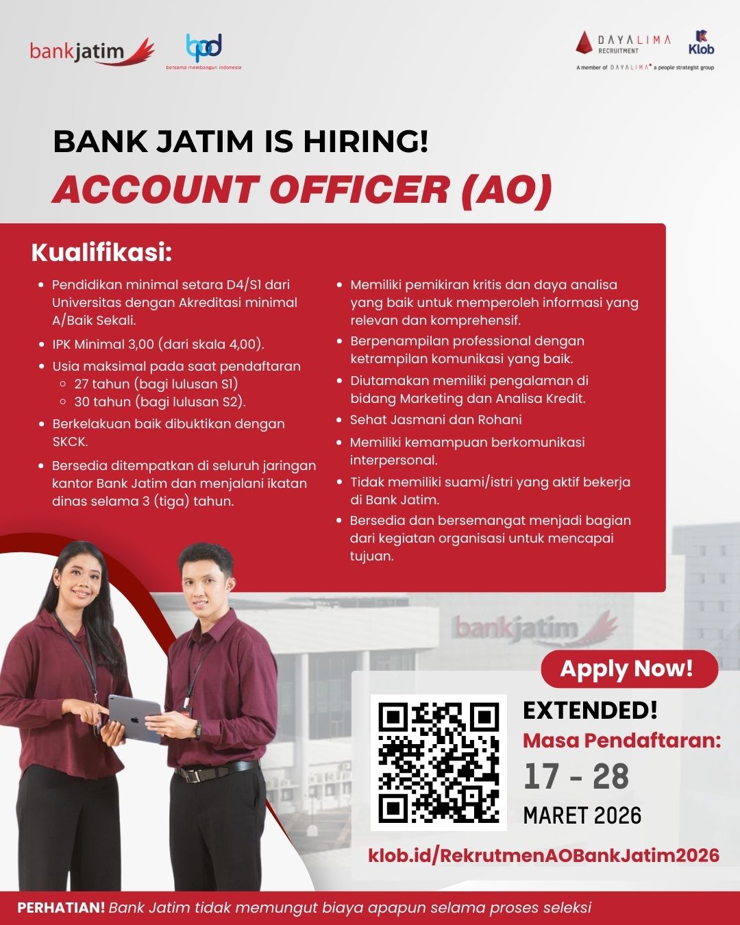 Job Vacancy Announcement – Account Officer, Bank Jatim 2026