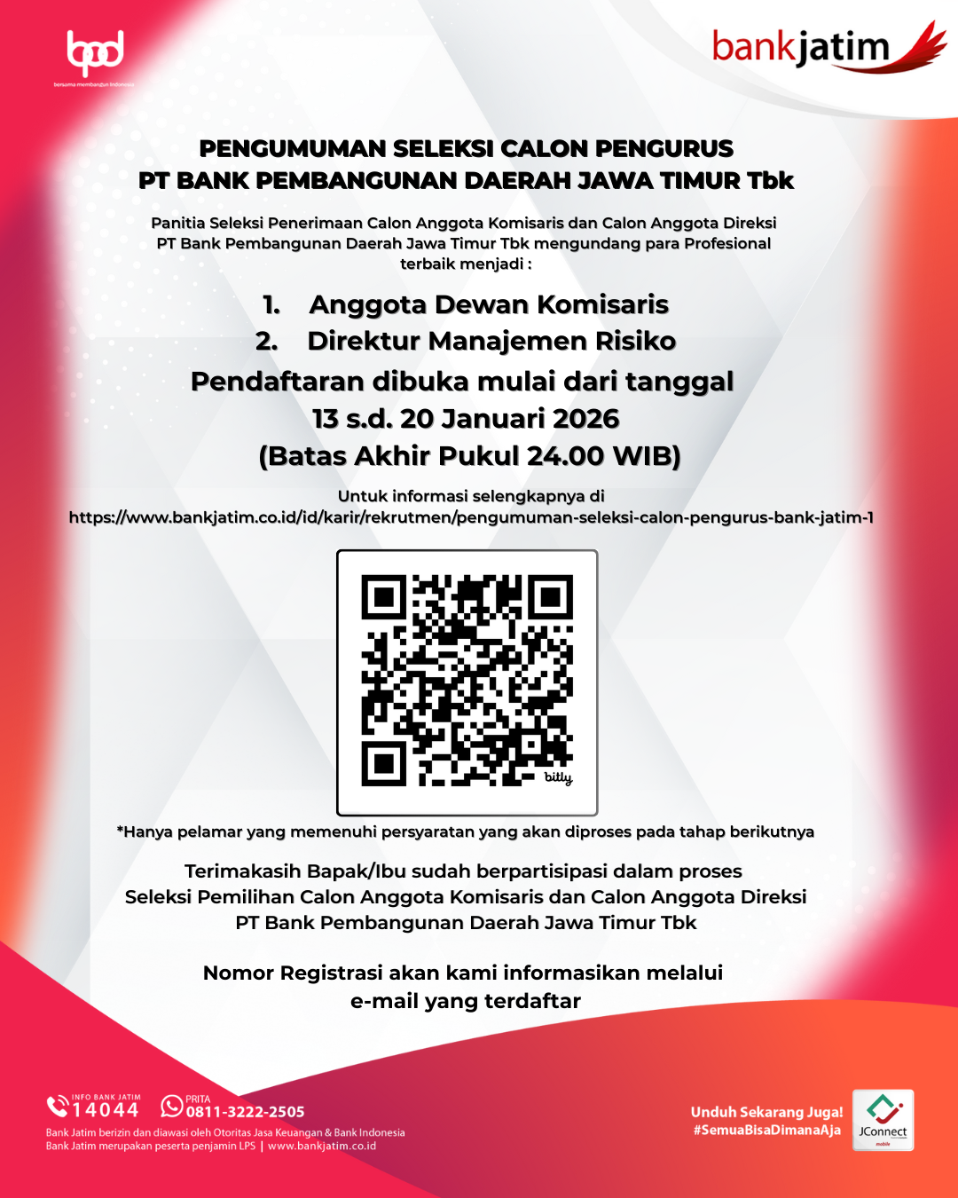 Pengumuman Seleksi Calon Pengurus Bank Jatim