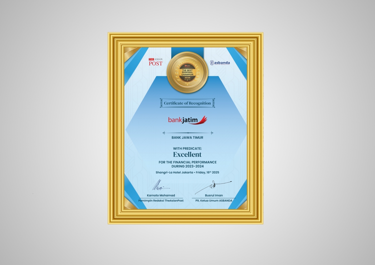 Terbaik Mitra Transaksi Treasury Dealing Room Tahun 2024 kategori Bank Pembangunan Daerah